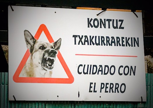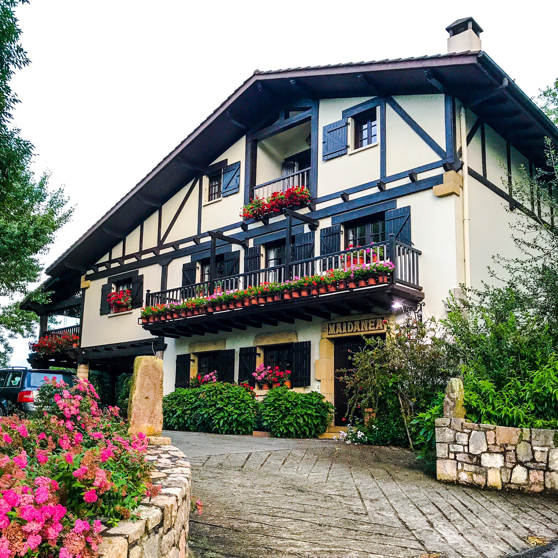 Speaking of views, the early farmland part of today’s hike featured a scattering of Basque houses like this. Of particular note concerning style, they are all white washed with red terra-cotta roofs and Tudor-like wooden-beam accents. (Oh, and the Basques love flowers!)