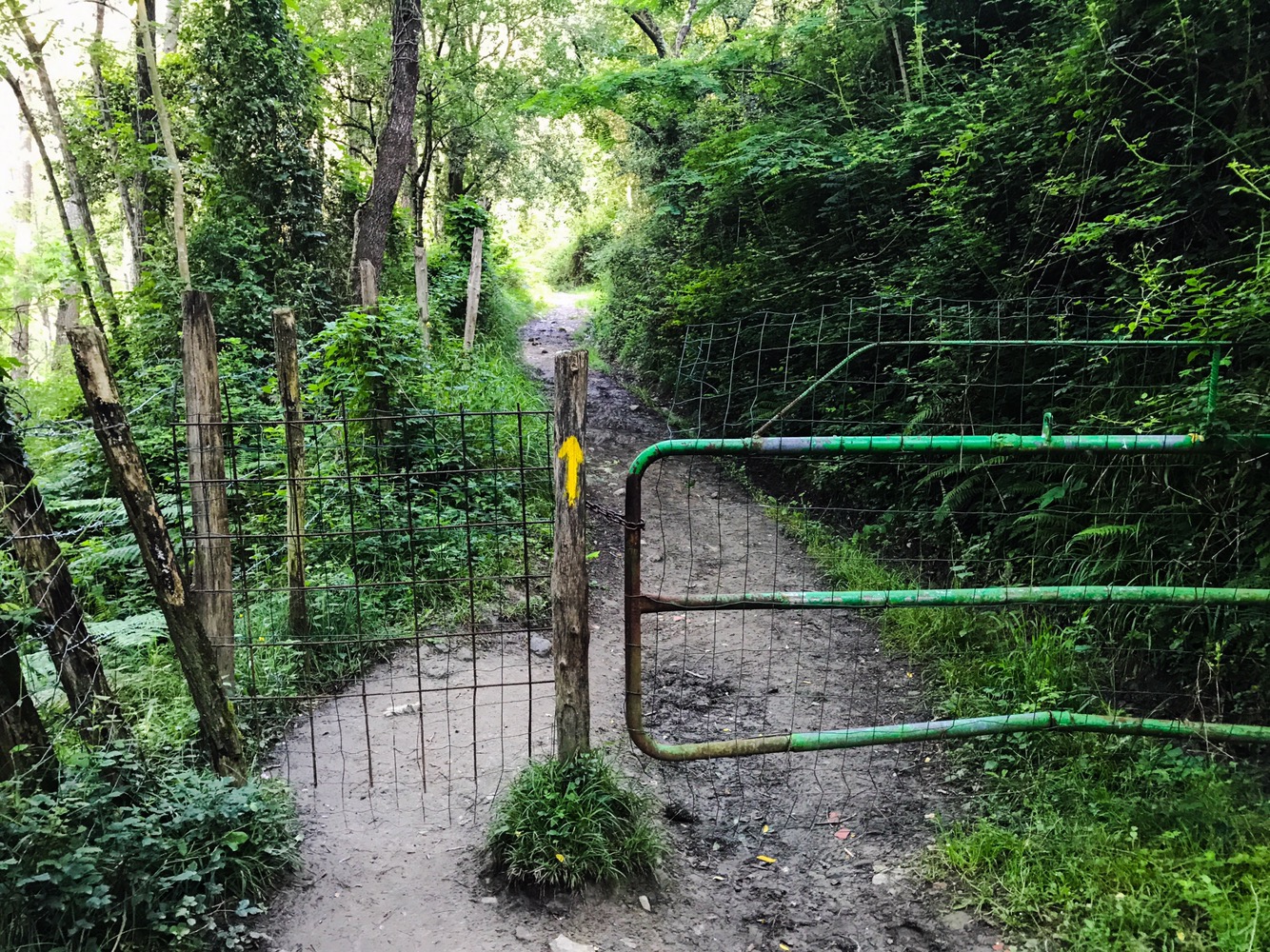 A whole section of the trail led through a wooded area of a private farm. It was kind of strange letting oneself through a gate onto someone’s property. But, Mikey discovered why closing the gates was important: