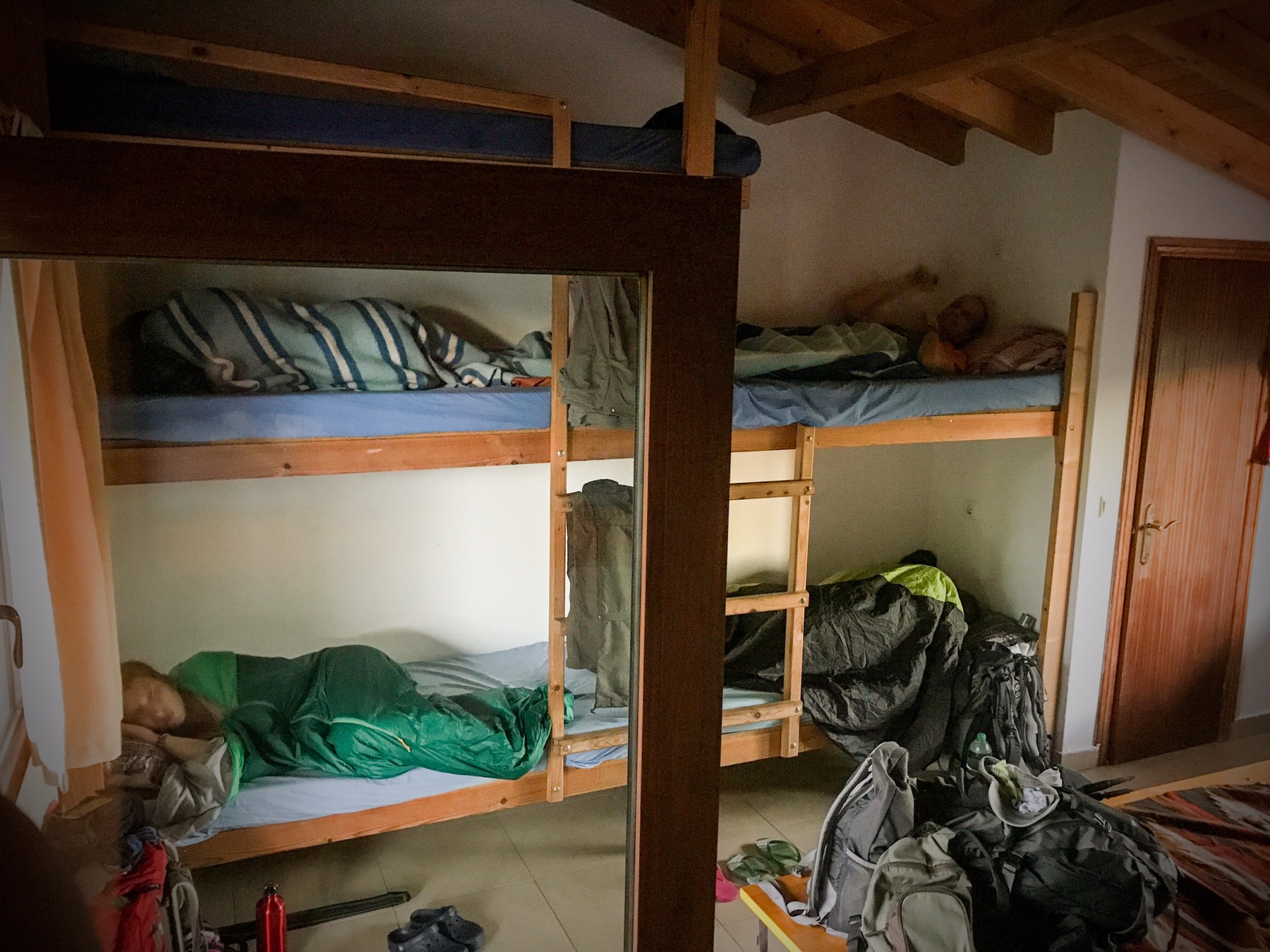 OK, maybe a bed. So, after many hot miles in the afternoon sun, Mikey arrived in Guemes at the albergue.