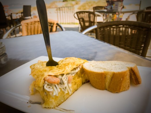 That’s a Spanish Tortilla, but it has a shrimp & baby eel salad stuffed inside – delicious!!! If your stomach is a bit turned by this, try walking 17km and this being your first real meal 😉 Just so you know, Mikey does seek out some interesting (aka weird) dishes, but it’s not his fault – the Spanish are serving them!