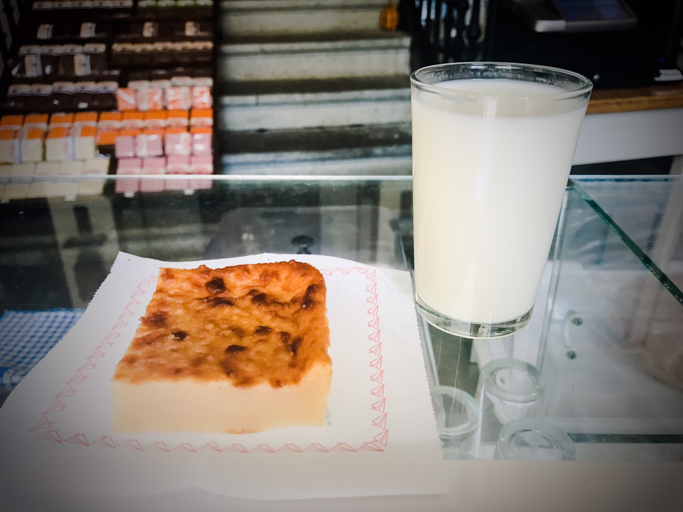 “Quesada Pasiega is a dessert typical of the region of Cantabria, Spain. It has the consistency of a dense pudding and is made from milk, sugar, butter, wheat flour, and egg, and flavored with lemon zest and cinnamon.” Yum.