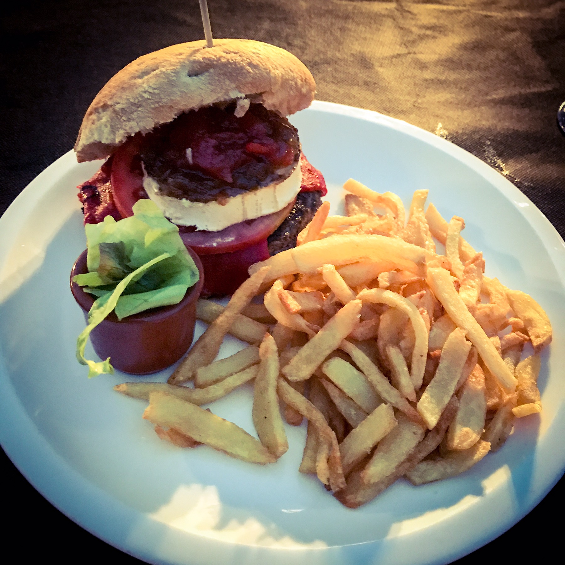 Then it was time for dinner and bed. This cheeseburger was amazing and had a huge hunk of local goat cheese on it. Delicious!