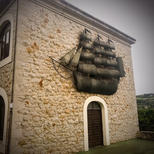 In just a little while, we entered San Vicente. This huge nautical metalwork on the side of a building clearly states the significance of the local maritime industry.