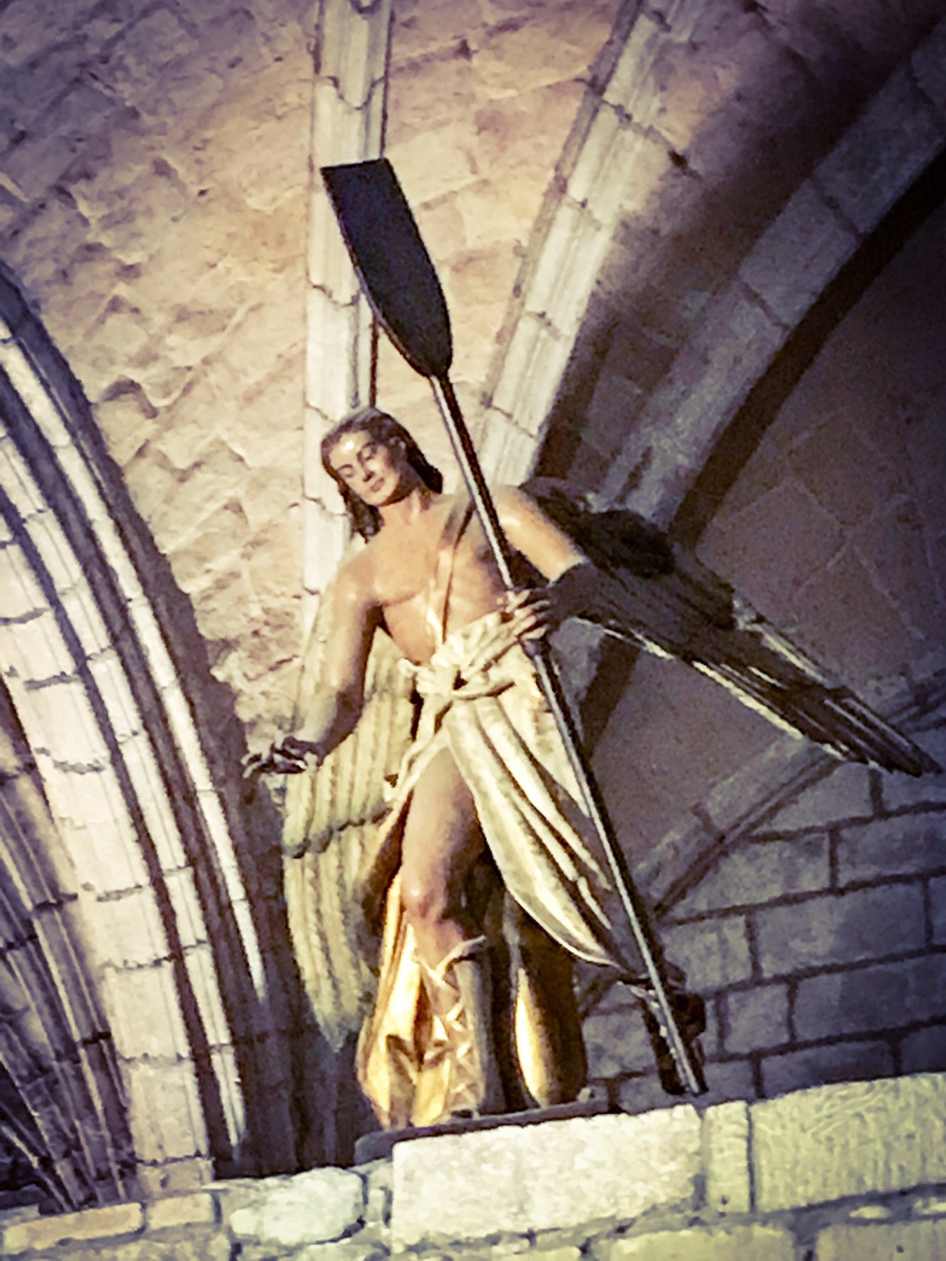 Here’s a magnified version. That’s an angel, but he’s holding an oar. Talk about your guardian angel for those at sea!