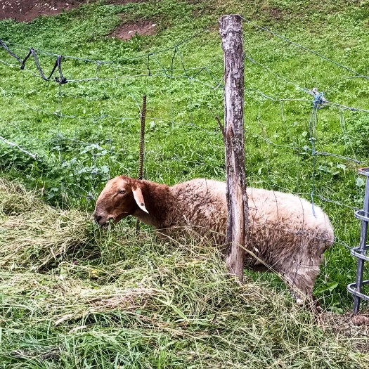 As for confines – once back on the road, this little lamb reminded us that “the grass is greener on the other side!” Well, mostly he reminded Mikey that his breakfast had long since passed and he needed a break if he was to continue.