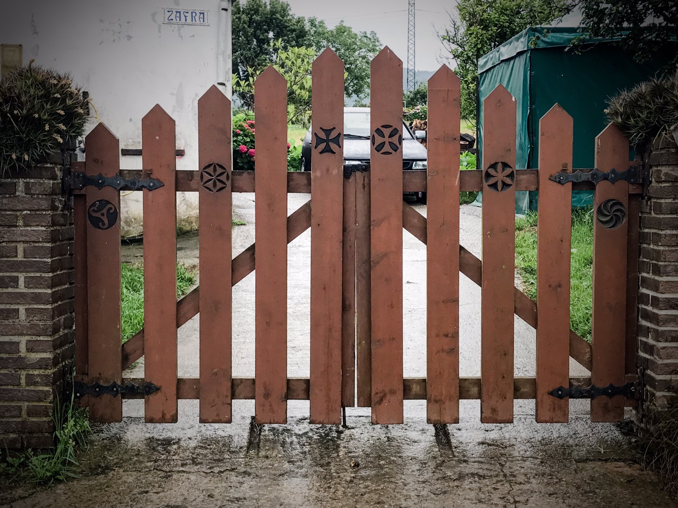Mikey wants to point out this modern example of ancient symbology now relegated to someone’s driveway gate. If you look closely, you can see a Celtic swastika, sun-god spirals, early Christian wheels, and Templar crosses. Well, I guess they’re covering all the bases. What’s that French proverb? “Praise the god of all, drink the wine, and let the world be the world.”