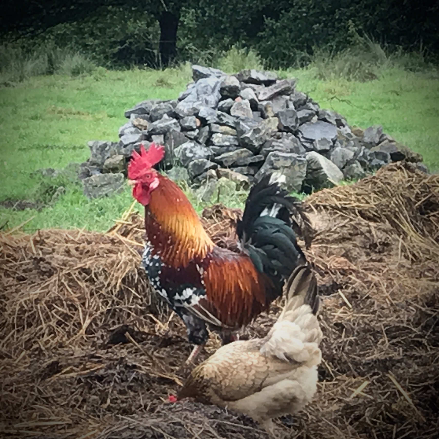 A cock! Mikey was hoping for a cockfight (not really), but these two were pretty ok with each other.