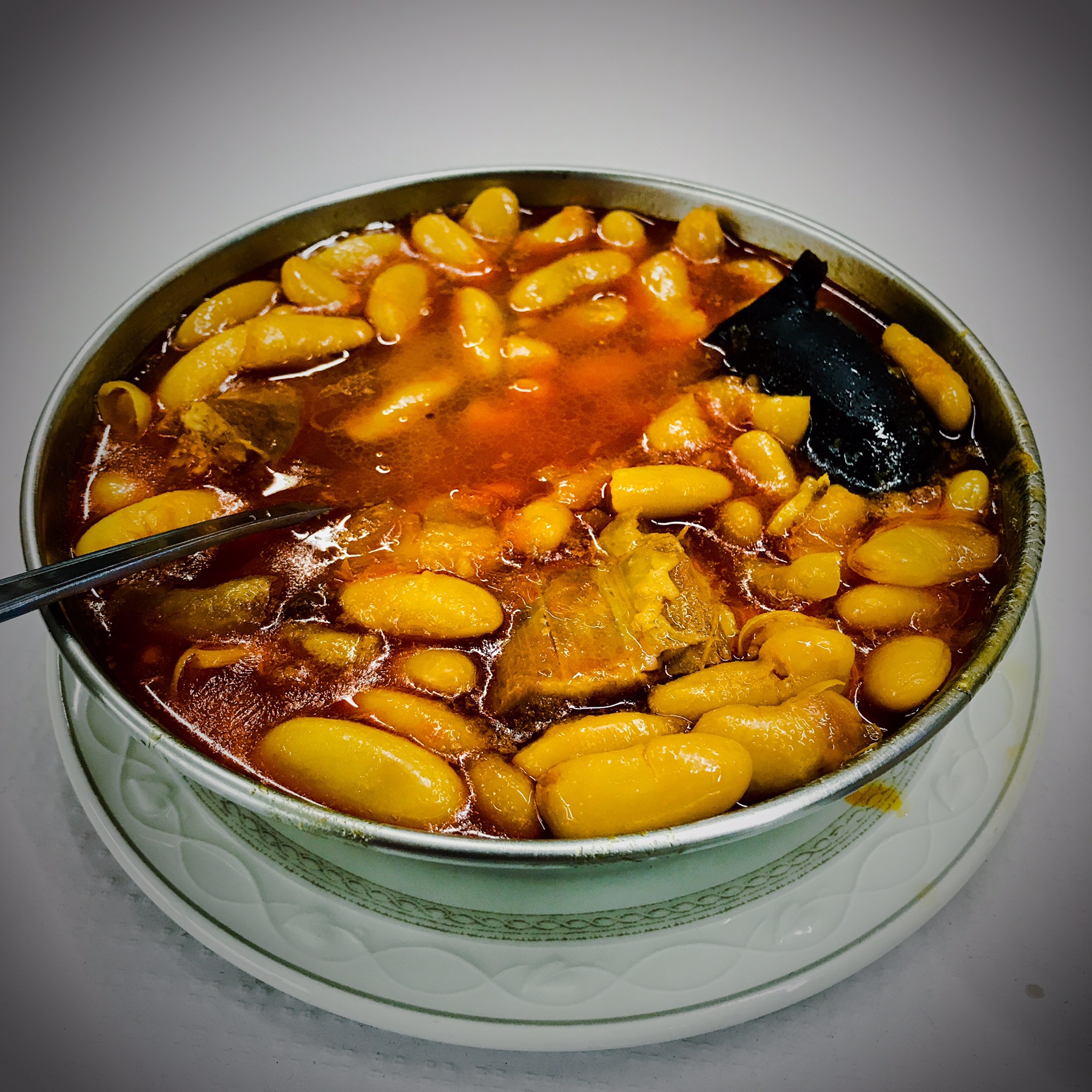 Tbe second dish was an Asturian Fabada. This ia a white bean soup with chorizo, morcilla, and pork fat back.