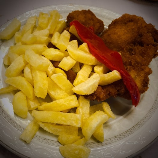 As Mikey was still a bit peckish, we decided to splurge again for a multi-course dinner. (Please know that by “splurging,” we mean consuming too many calories far too late in the evening.) Dinner tonight was 4 courses and included bread and a full bottle of wine. The price was 10€ inclusive of tax and tip.