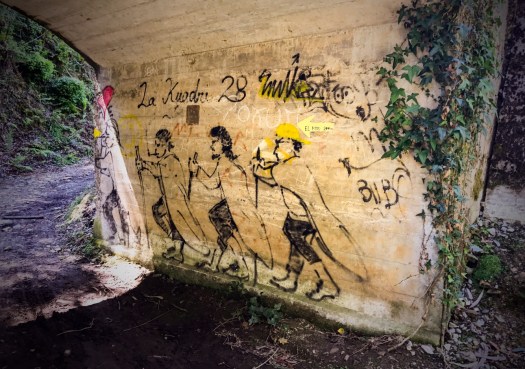 Other times, we walk along paths for quite some time before encountering an underpass in which local graffiti artists have taken pains to reassure us of our chosen path.