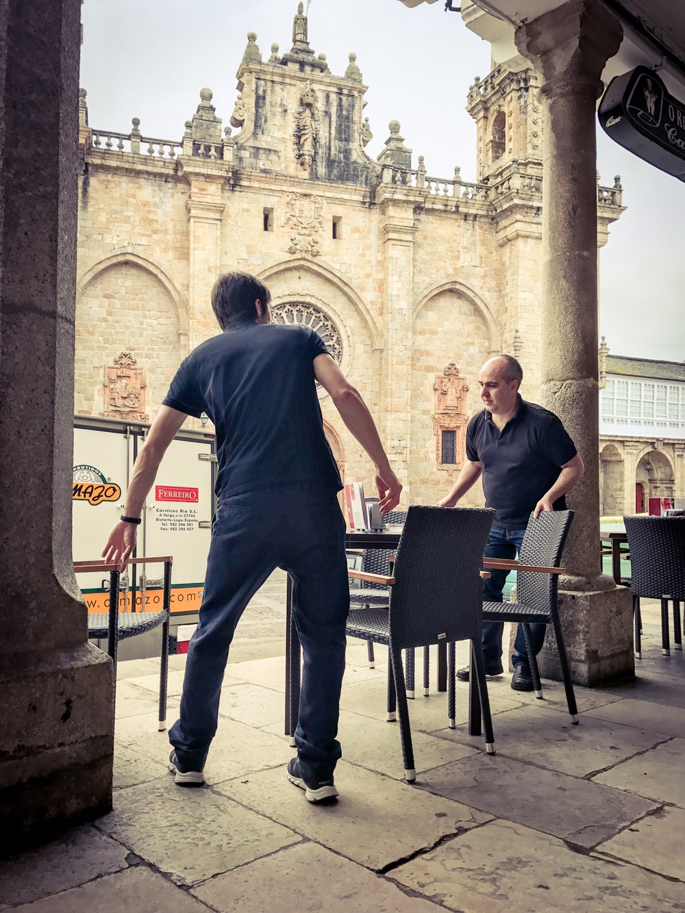 Having walked the Camino with Mikey last year, Frank will perfectly understand what is transpiring. Upon arrival, Mikey set his backpack down and said hello to the two servers who were conversing on the terrace. He placed an order for a coffee and was promptly served.