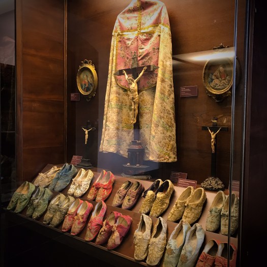 Oh, and if you need a costume – check out the bishops’ slipper collection. (“Seriously, Francis, the jade pair just looks divine!”)