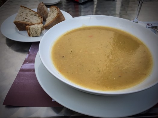 Dinner consisted of a vegetable purée, steak, french fries, cake, wine, and coffee. Not bad for 9€, but Mikey was too tired and forgot to take pictures following the first course.