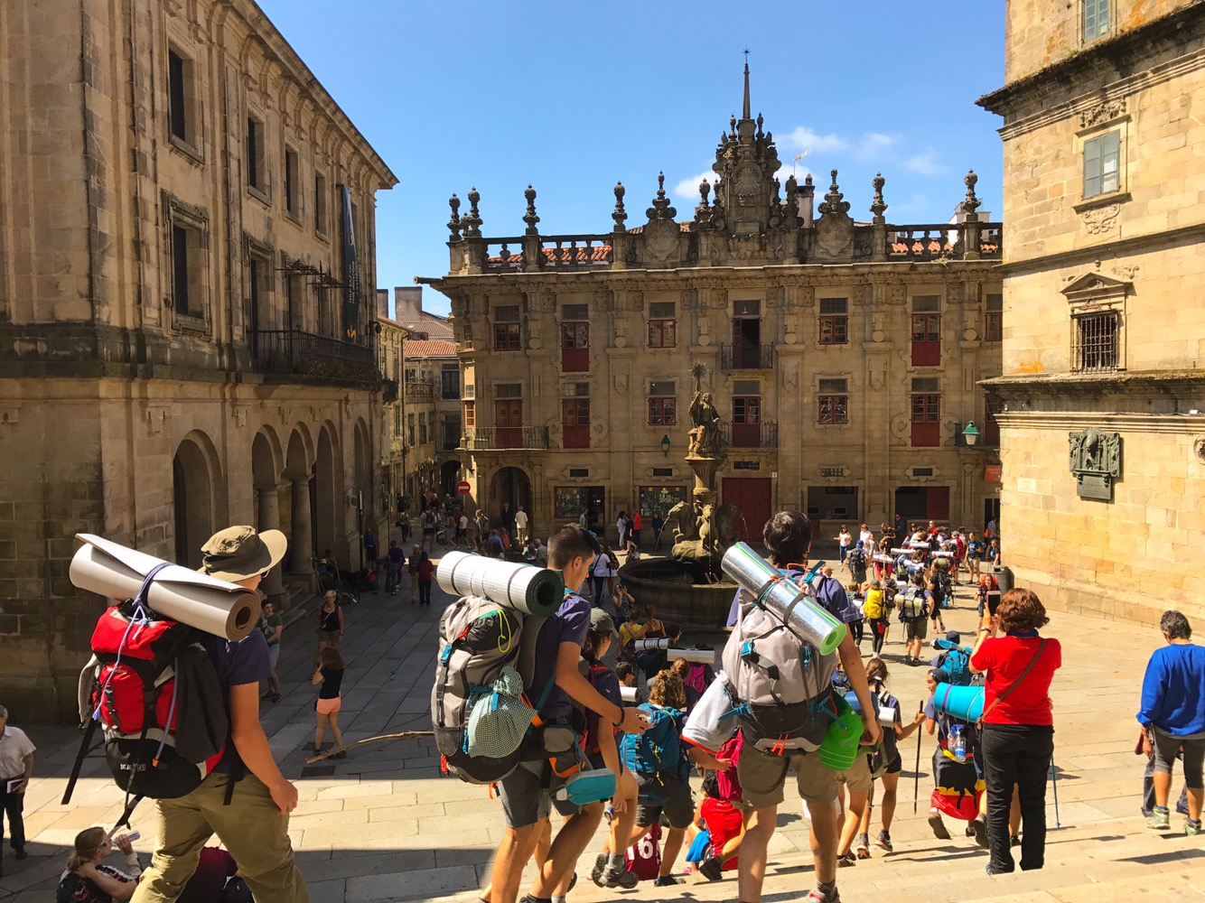 It felt like a corrida today! Even considering that we were the last to leave the albergue and then had a leisurely coffee breakfast, there were still hundreds of pilgrims vying to arrive in Santiago before noon mass.