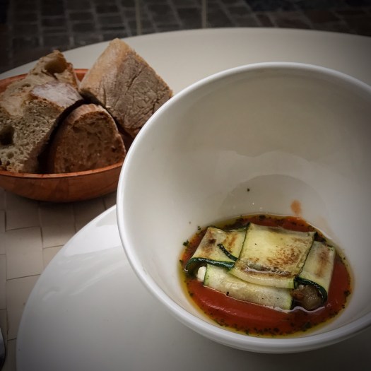 The second course was a zucchini ravioli which clearly made up for anything lacking before. Mikey was glad for the bread as he proceeded to mop up all of the sauce.
