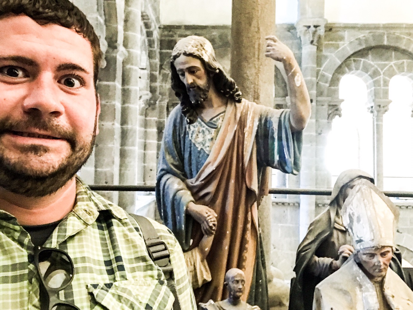 Also trying to be larger than life, Mikey wanted a selfie with Jesus.