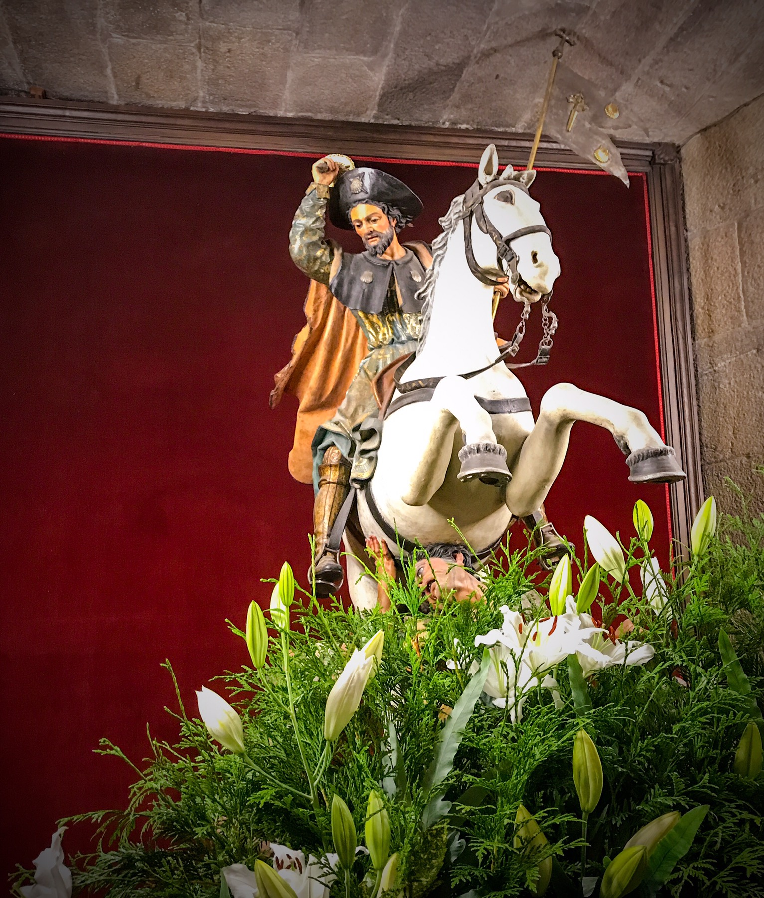 Well, the muslims just won’t quit, so Saint James helps out a few times by appearing on horseback and slaughtering the infidels. Whether or not this happened, he got the new title of Santiago Matamoros or St James Moor-Killer and became the patron saint for equestrians.