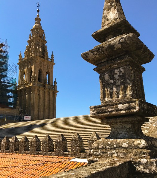 Oh, and just in case they get too zealous and it flies off – there’s a backup in the archbishop’s library. Like the butafumeiro, this is a most impressive cathedral that really has to be seen from many vantage points. So, let’s start climbing!