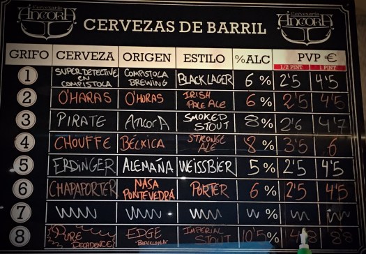 The fun part was talking shop with the manager/owner for a couple of hours. We tried some fun bottles and even tasted a homebrew of his that had admittedly not come out right. Anyways, it was an enjoyable evening and Mikey learned a lot of beer/bar industry terms in Spanish. For instance, a most important (albeit less technical) phrase for times like these is: “Bueno, pues marchamos. Buenas noches y hasta luego.” 😉