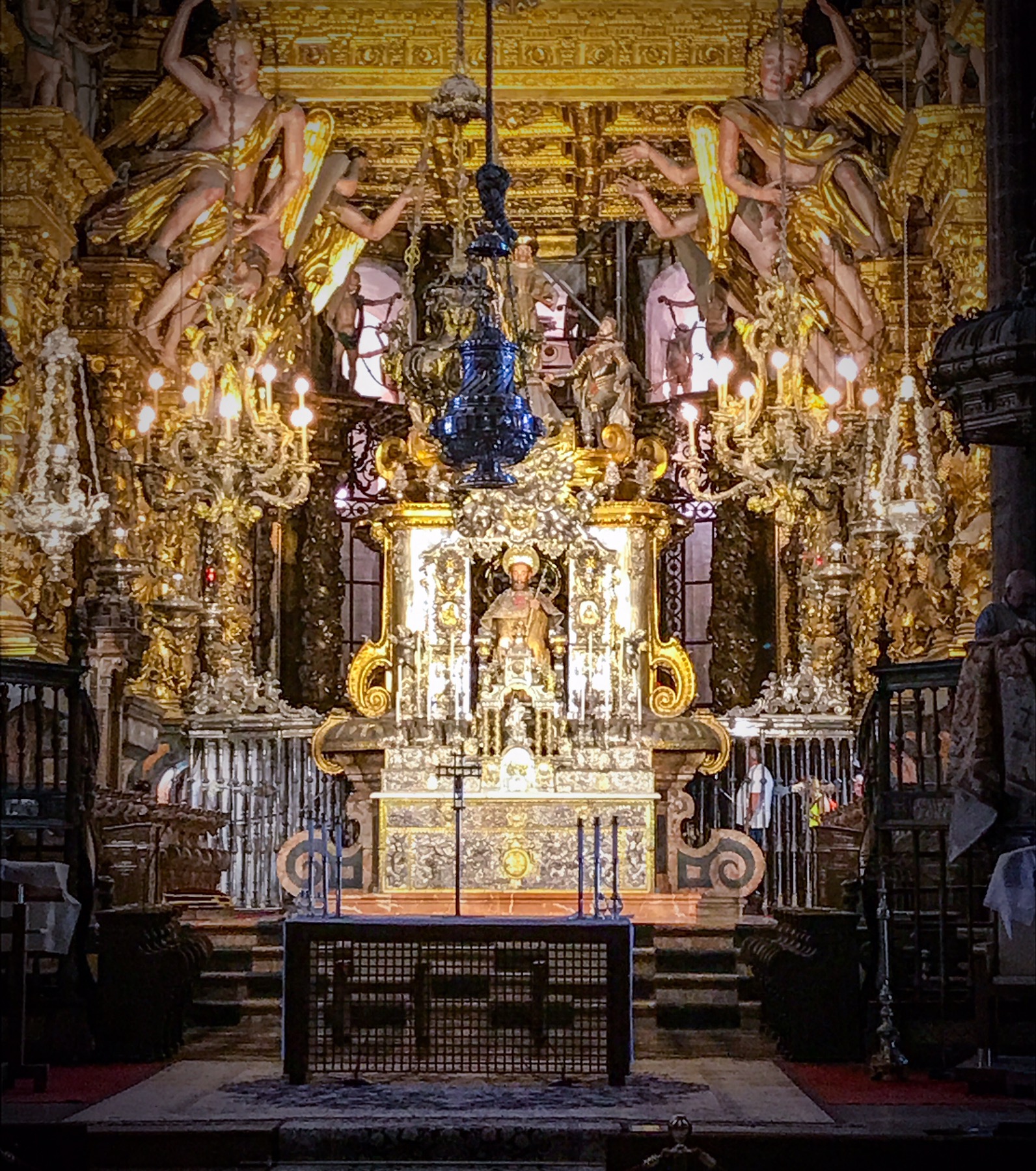 If you’ll indulge Mikey for a moment, we’ll breakdown this Baroque altar to refresh your memory on why everyone has walked to Santiago.