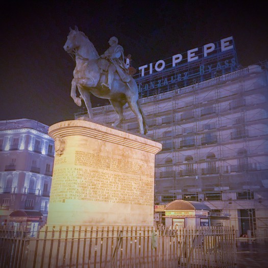 Yes, this looks like a photoshopped sticker, but it’s an actual sign in the Puerta del Sol in the heart of Madrid.