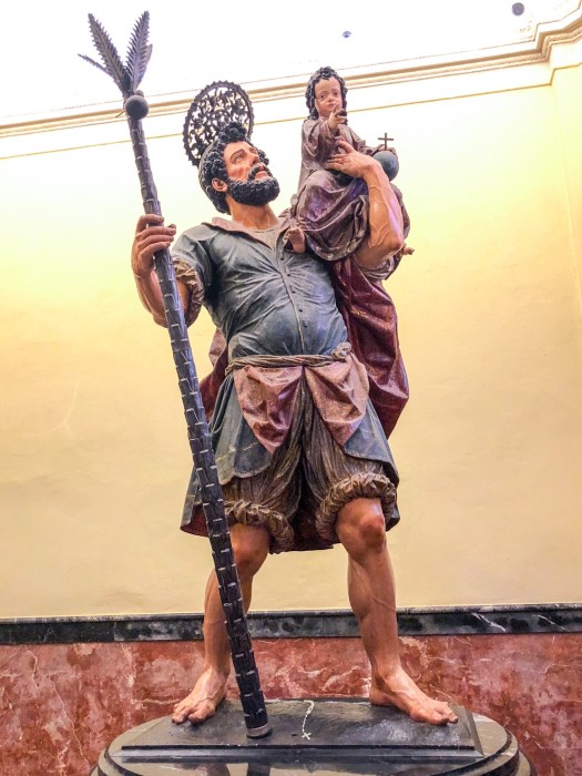 Mikey really liked this statue of St. Christopher, the patron saint of travelers. Did you know that Christopher means ”holder of Christ?” So guess who he’s carrying?