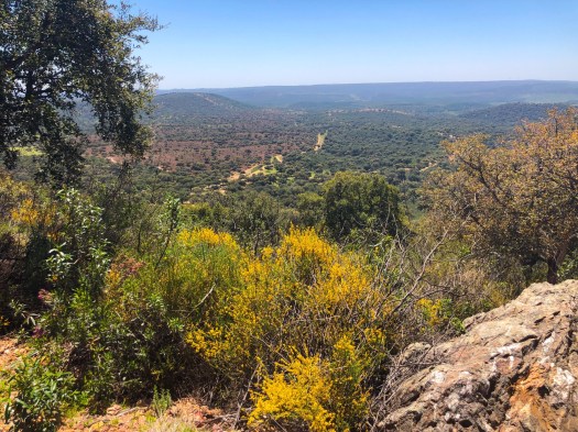 While Mikey wants me to say that we made it all in one go, it wasn’t quite so. We stopped a few times to wheezingly rest a throbbing ankle but did make it to the top without too much exhaustion. Yet, it may have been the look from the top that served as rose-tinted glasses. Looking back, we could see most of the 15km we had traveled through the park and, turning forward, saw the village of Almadén de la Plata down below.