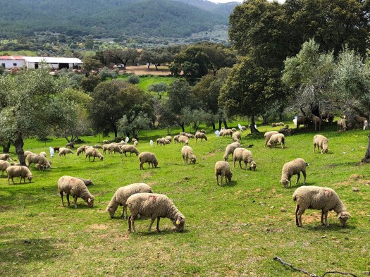 Just before entering Monesterio, we came upon this pasture. Perhaps delirious from the hike and heat, Mikey called out his best “you/ewe” joke but got nothing. Well – Fleece Navidad to Ewe!