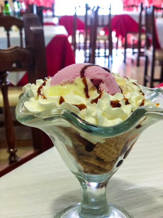 Speaking of tasty – the restaurant even made its own ice cream! Mikey was torn between strawberry and lemon, so they just mixed them for him. Heaven.
