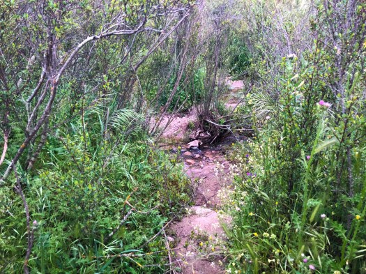 Flooded paths, however, are much less enjoyable. Sure, we might wade through this section (Mikey’s boots are waterproof-ish) but it is about a foot deep. Taking boots and socks off could work, but then there’s the drying off in the brisk morning air.