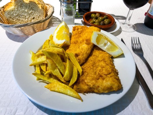 Then it was fish and chips for the main course. Mikey is trying not to think about how far from the ocean we are at present or about how he should have ordered a white wine with this particular one fare. Oh well. We have a busy morrow, so let us close for now. Goodnight.