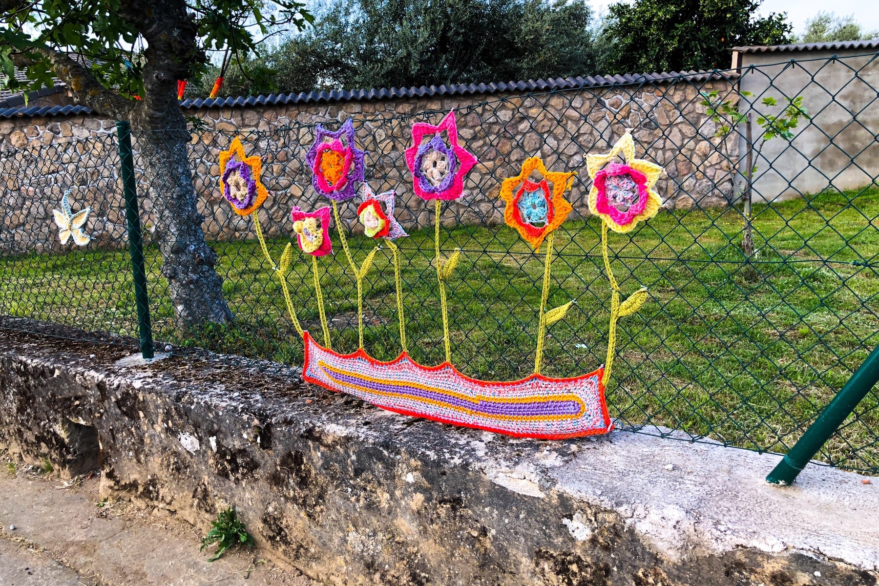 What a wonderful night of sleep we had! The beds were so comfortable and Mikey barely noticed anyone else in the room. As a very diplomatic pilgrim put it, "Oh, Mikey, you're a very light snorer." Hmmm... On our exit, we encountered still more crocheted decorations about the town. Let's just say A for effort …