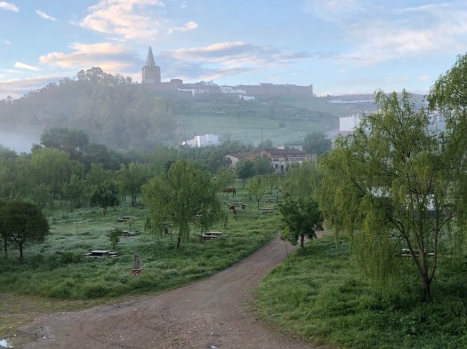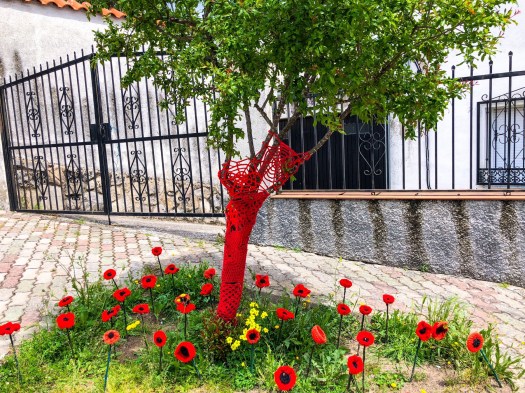 So we arrived 7km away Friday m the Camino in Oliva de Plasencia and were greeted by crocheted trees and flowers. Yeah, some of the town grandmothers have way too much time on their hands!