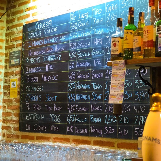 Ah, yes – refreshments. After settling into our hotel and walking the city to get our bearings, it was time to try one of the craft beer bars in the city. Although they had nothing from Salamanca, we were able to taste a couple of beers from Andalusia that we had missed while there.