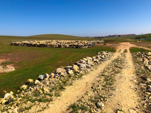 We were close, but not quite there. In fact, it was quite odd seeing a corral of sheep this close to the suburbs. Oh, and there was no shepherd in sight – just one very jumpy sheepdog.