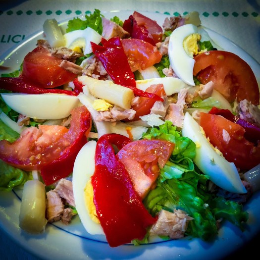 This “salad night” ritual following a big lunch is actually working out well. This one had lots of flavor and protein and was a welcome relief considering our meat and potatoes luncheon. That said, we should end this post and get to bed. Goodnight, dear reader. Hasta pronto.